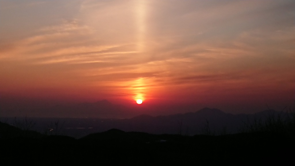 今日の夕日もきれいだろうなあと母屋の2Fから眺めていました。普賢岳に沈む夕日は雲がかかっていてちょっと残念でした。