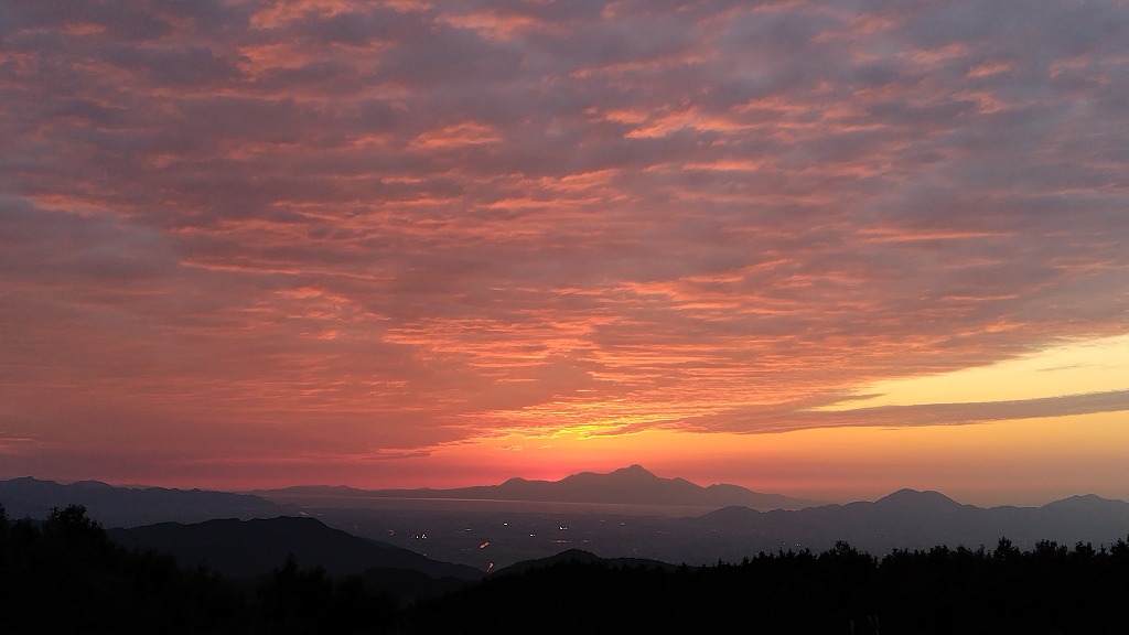 10月になると夕日がきれいに見えてきます。一昨日も2階のベランダから見えてきたので、慌てて広場に行って写真を撮ってきました。この写真よりも肉眼で見たほうがもっときれいです。
